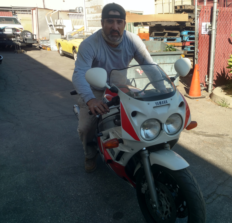 Paul preping a bike for a commercial shoot
